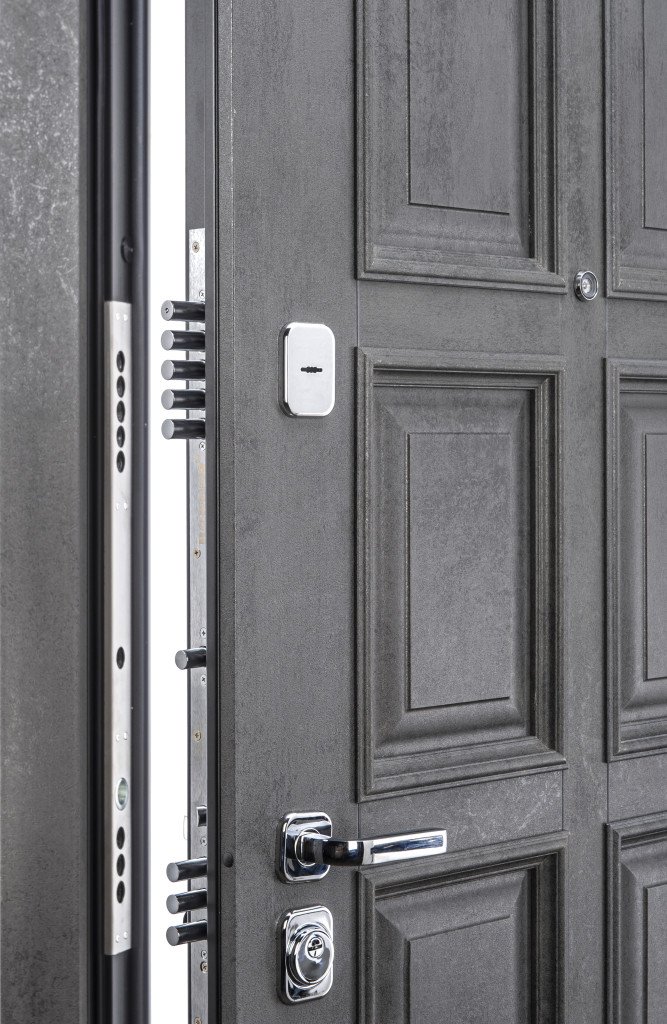 Четыре вертикально-горизонтальных усиливающих омега-профиля (ребра) создают единую монолитную жесткость и прочность конструкции. Сверхпрочная конструкция «6x2» - двойная толщина стали профиля полотна, двух контуров коробки, в зонах замка и петель. Дополнительную стойкость ко взлому обеспечивают два противосъемных штыря с цинковым покрытием (для защиты металла от коррозии). |