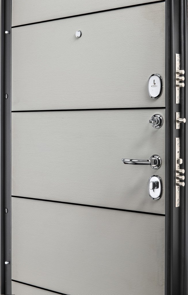 Усиление Четыре вертикально-горизонтальных усиливающих омега-профиля (ребра) создают единую монолитную жесткость и прочность конструкции. Сверхпрочная конструкция «6x2» - двойная толщина стали профиля полотна, двух контуров коробки, в зонах замка и петель. Дополнительную стойкость ко взлому обеспечивают два противосъемных штыря с цинковым покрытием (для защиты металла от коррозии).
